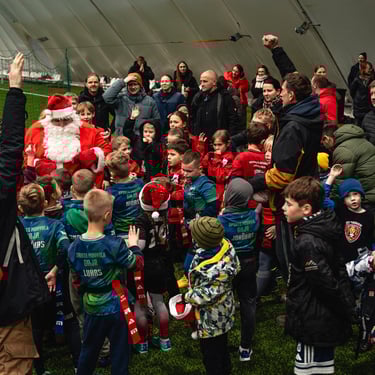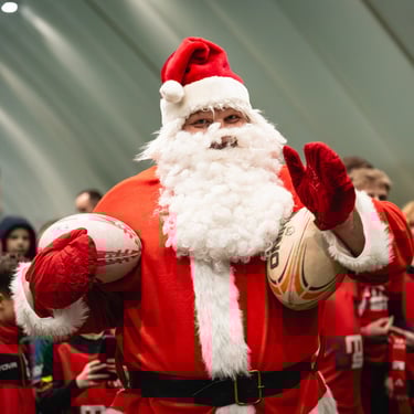 While the city was getting ready for Christmas, the rugby field was full of action – children were playing, teams were chanting their support, and the festive atmosphere was topped off by a surprise guest.