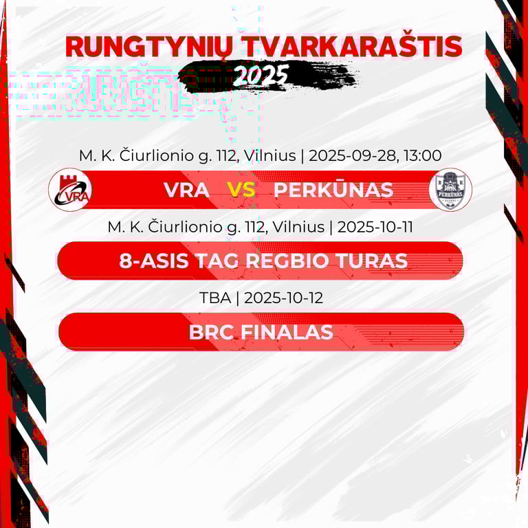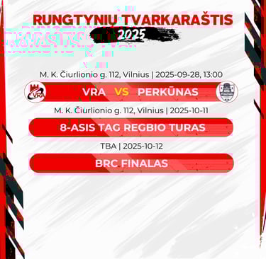 Varžybų tvarkaraštis bus tikslinamas ir pildomas ateityje. Aktualiausias naujienas rasite mūsų socialiniuose tinkluose, kur būsite informuoti apie visus pakeitimus.